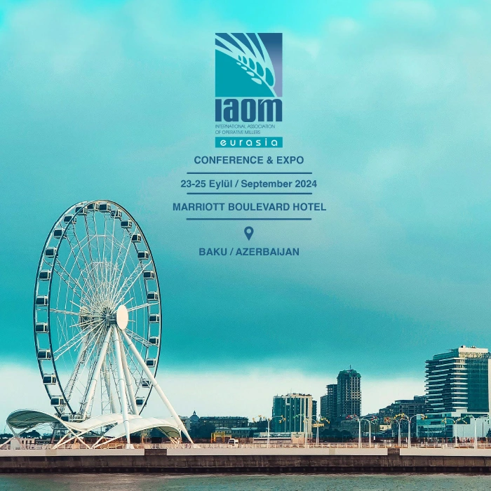 IAOM EURASIA Conference and Expo will be held on September 23-25, 2024 for post-harvest, coordinated with and hosted by Association of Grain Producers and Processors, Azerbaijan in Baku, Azerbaijan. Moreover, Ministry of Agriculture and Foresty, Türkiye, Ministry of Agriculture of Azerbaijan, Turkish Grain Board (TMO), Agragarian Service Agency of Azerbqijan, Black Sea Flour Industrialists Association(KUSAD) and Black Sea Exporters Union(KİB) will participate as a partners.